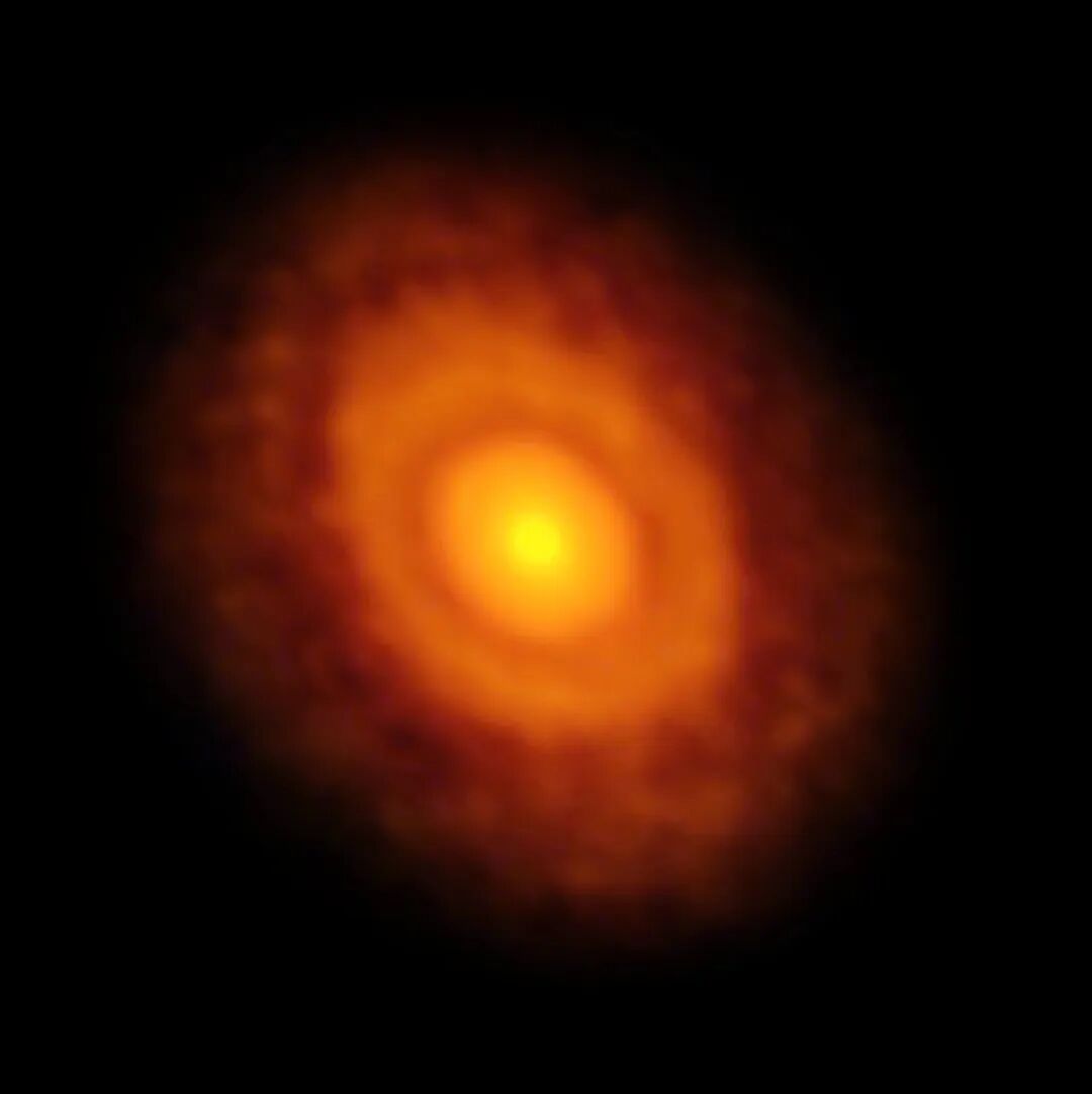 阿塔卡马大型毫米/亚毫米波阵拍摄的年轻恒星V883 Ori周围的行星形成盘。(图片来源:ALMA)