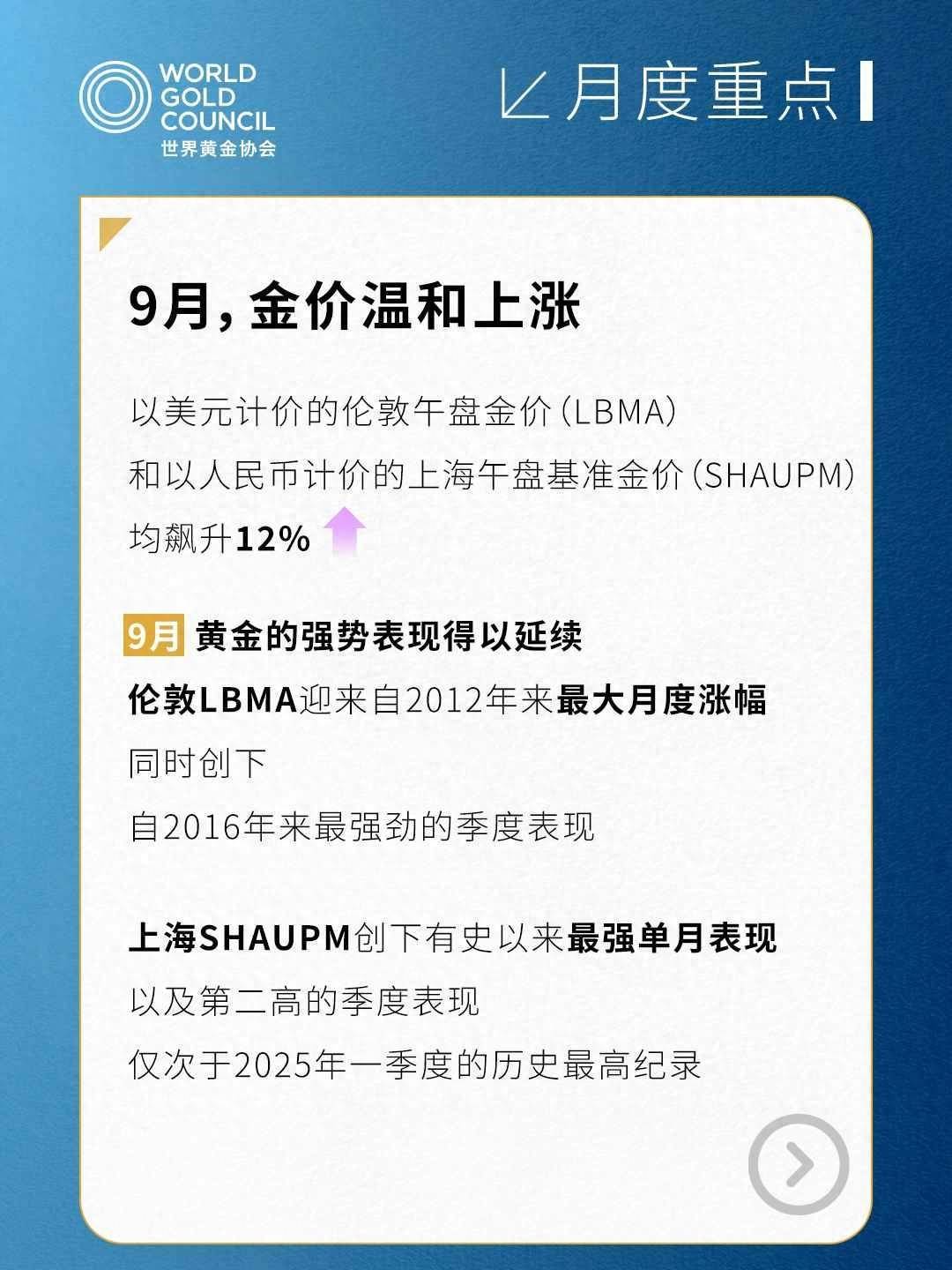 智通财经APP获悉,世界黄金协会10月24日发文称,9月,以人民币计价的上海午盘基准金价(SHAUPM)创下有史以来最强单月表现以及第二高的季度表现,仅次于2025年一季度的历史最高纪录。中国市场三季度上游实物黄金需求于9月回暖收官。9月,上海实物黄金需求达到118吨,环比反弹33吨智云理财,同比增加4吨。该协会认为回升主要归因于:金价重拾升势以及金饰行业需求略有回暖。