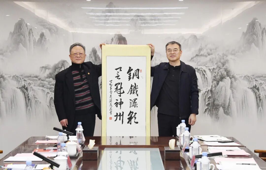 活动期间,协会特别向冠洲股份赠送了由协会党支部副书记、监事长张义昆亲笔题写的墨宝“钢铁添彩、誉冠神州”,以此赞誉冠洲在钢铁深加工领域的卓越贡献与品牌声誉。张昭董事长代表企业接受赠礼,并与张义昆监事长共同合影留念,将交流活动的友好氛围推向高潮。